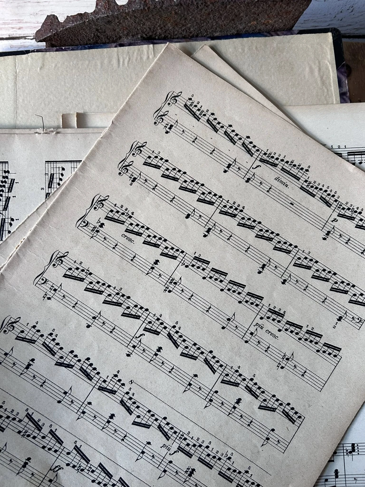 Add a unique nostalgic touch to your creative projects with this set of 20 vintage sheet music papers.